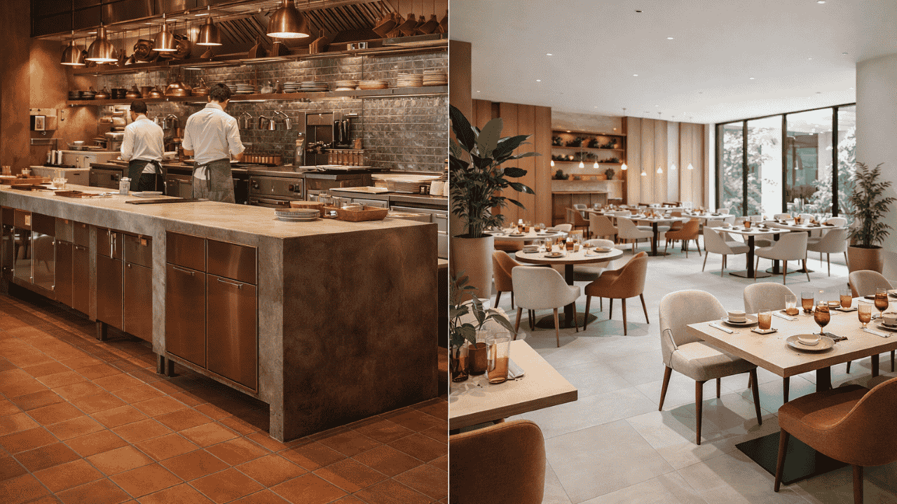 Compara arcilla y porcelanato para espacios de alto tráfico en